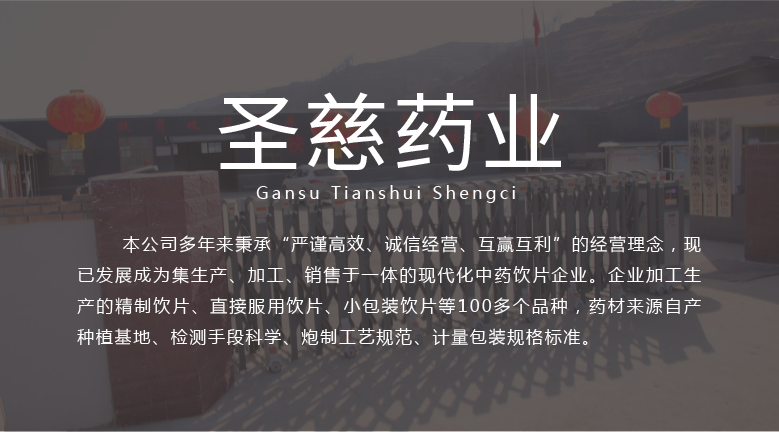 甘肅天水圣慈藥業有限公司成立于2016年11月8日,注冊資本500萬元,位于甘肅省天水市張川回族自治縣張川鎮中城南路,本公司多年秉承“嚴謹高效、誠信經營、互贏互利”的經營理念,現已發展成為集生產、加工、銷售于一體的現代化中藥飲片企業。企業加工生產的精制飲片、直接服用飲片、小包裝飲片等100多個品種,藥材來源自產種植基地、檢測手段科學、炮制工藝規范、計量包裝規格標準。